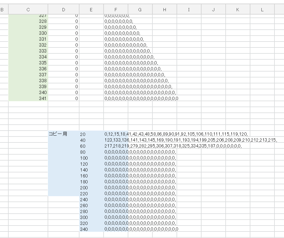 赤色の部分を001から341まで作成すると一覧表になる。